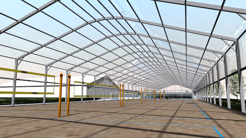 De voorkeur gaat daarom uit naar een indoor beachhal met 6 beachvolleyvelden.